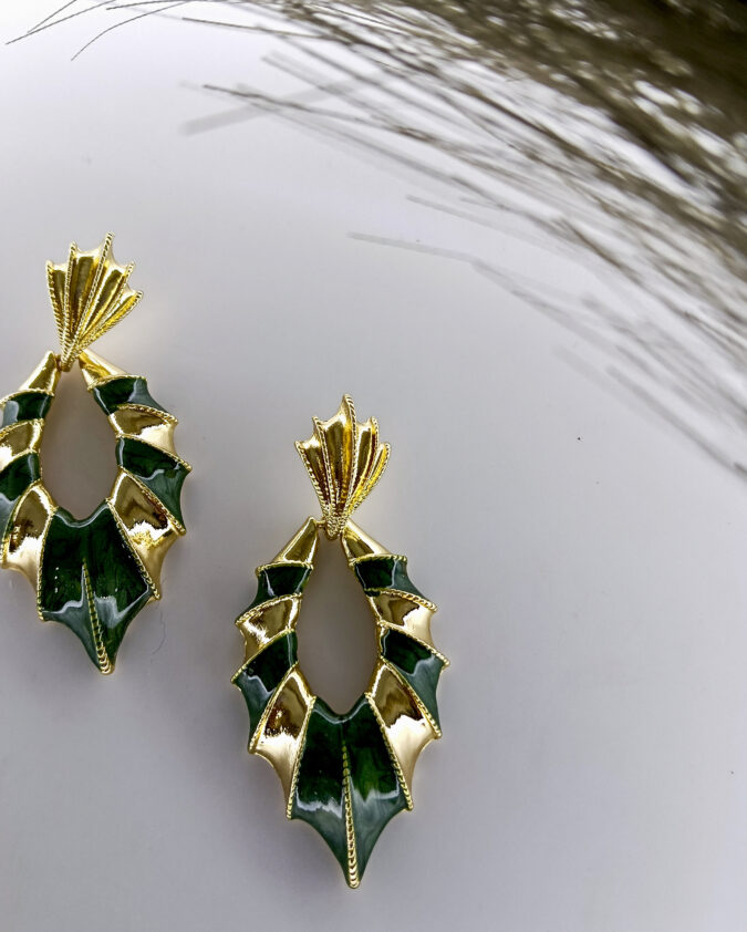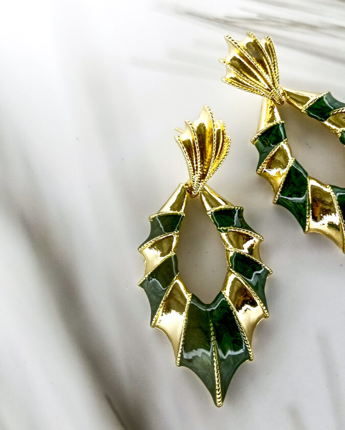 Tropical Green and Gold Leaf Drop Earrings