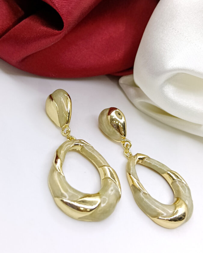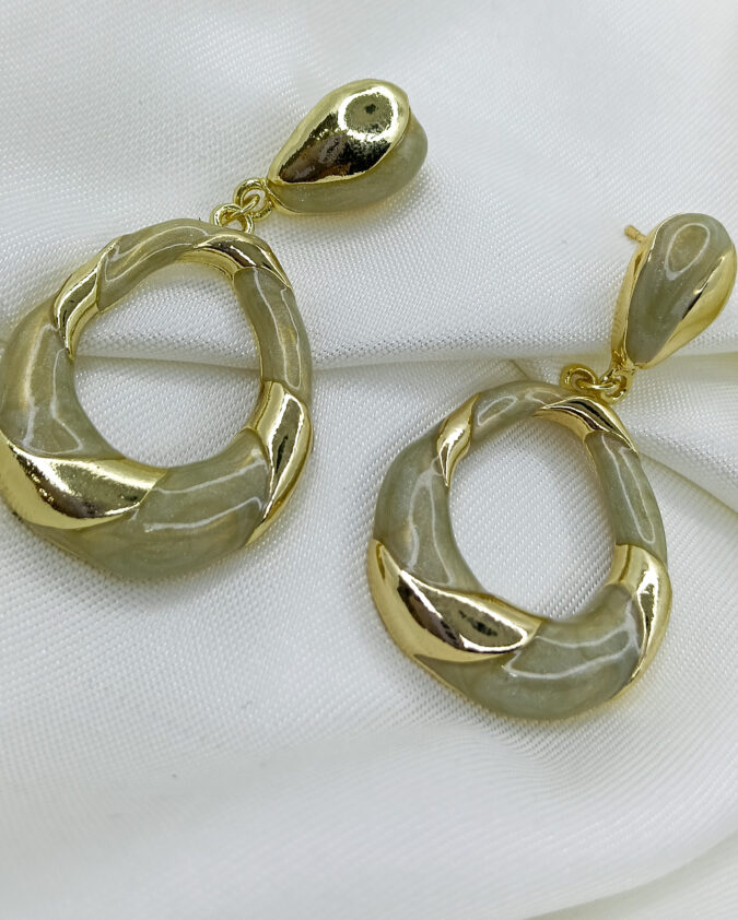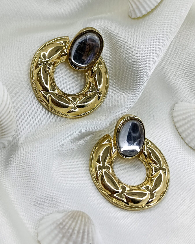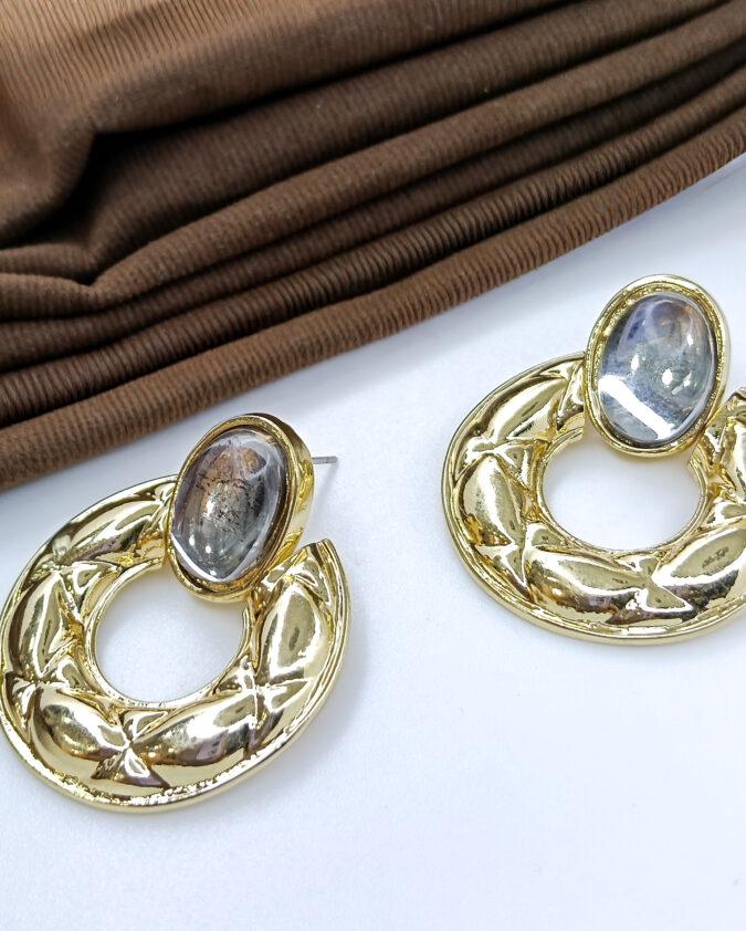 Textured Gold Hoop and Smoky Oval Earrings