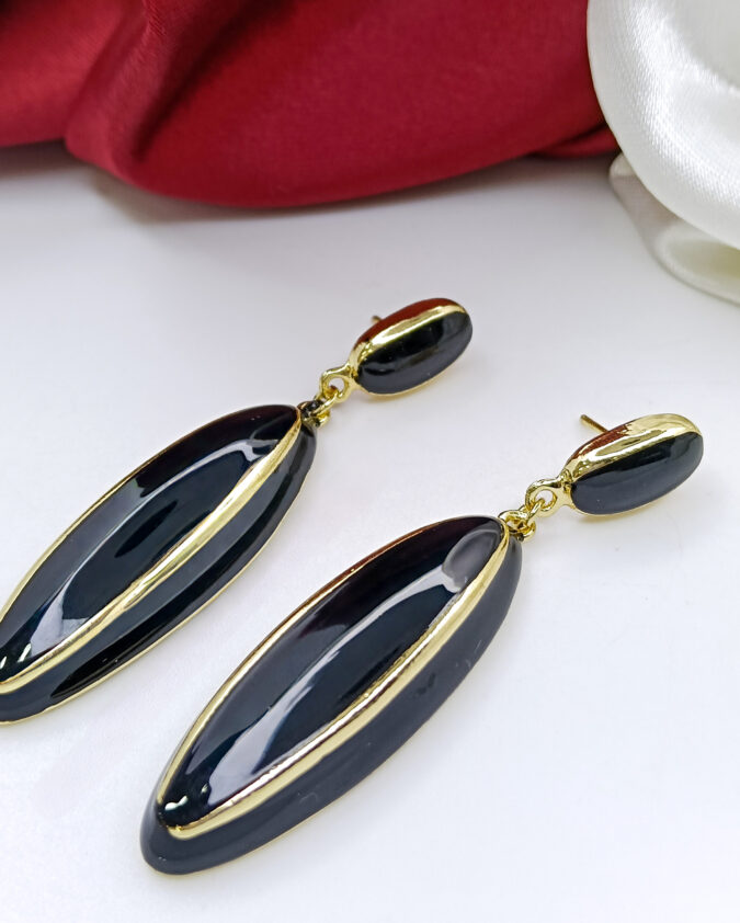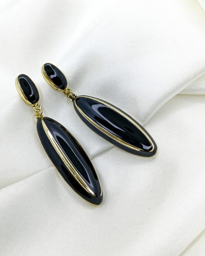 Viennois Black Enamel Long Drop Earrings with Gold Plated Edges
