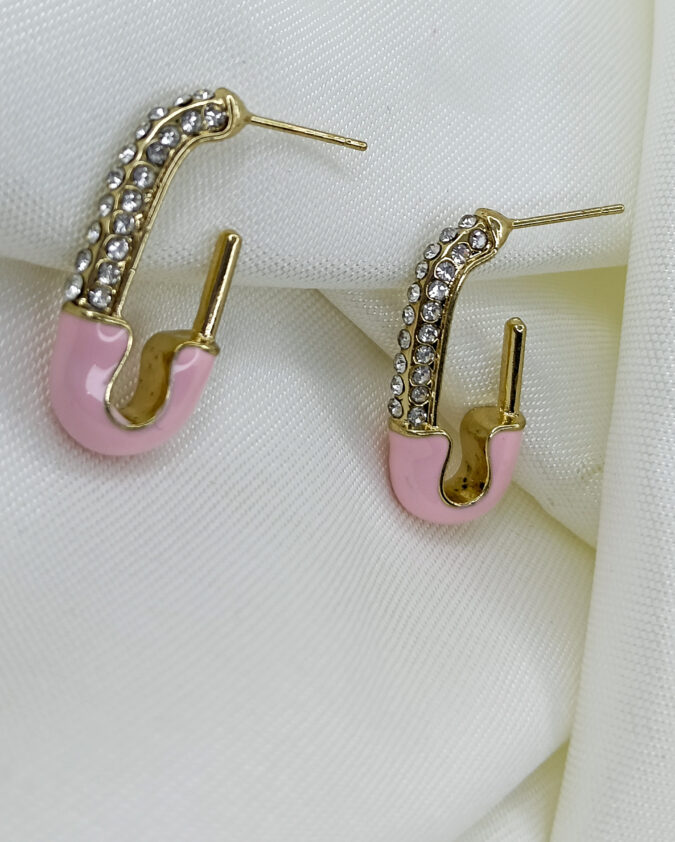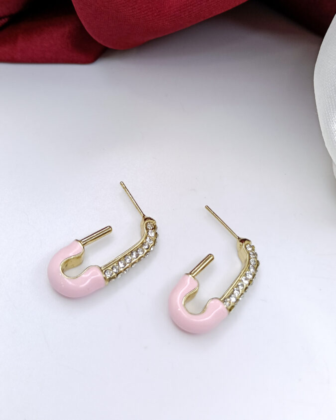 Trendy Pink Safety Pin Hoop Earrings