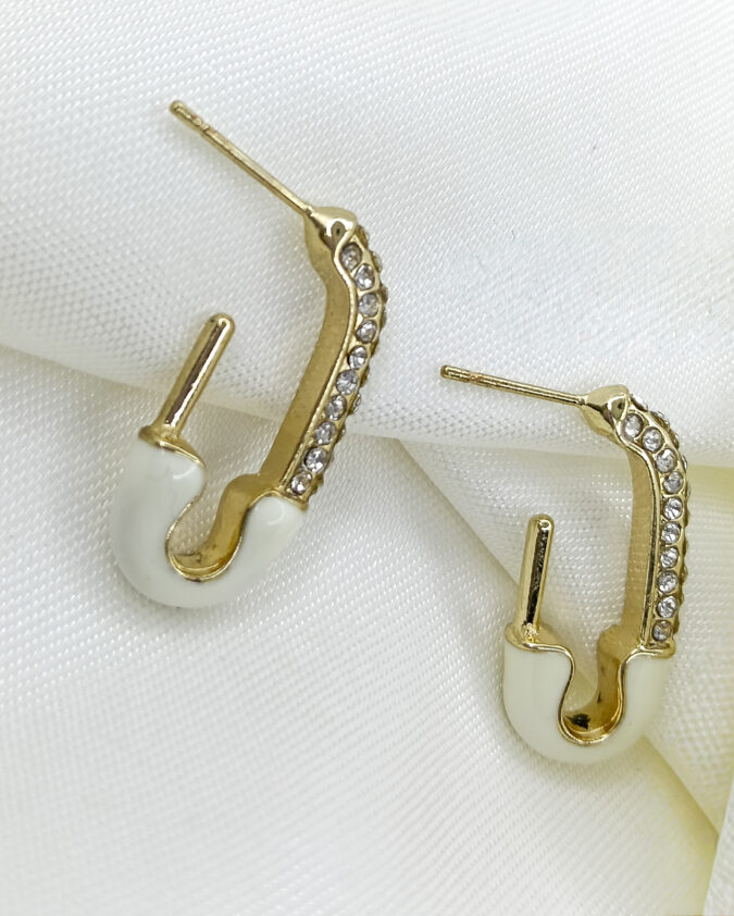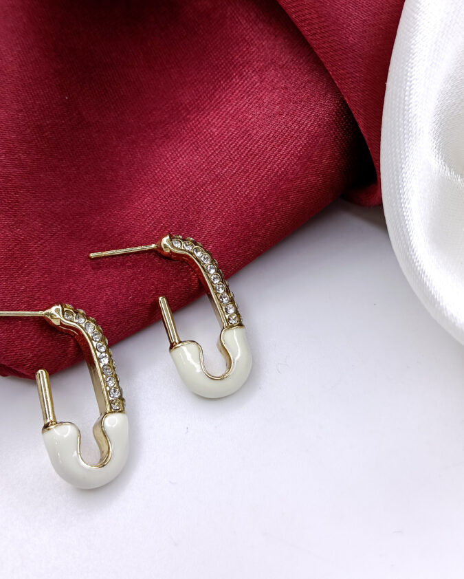 Trendy White Safety Pin Hoop Earrings