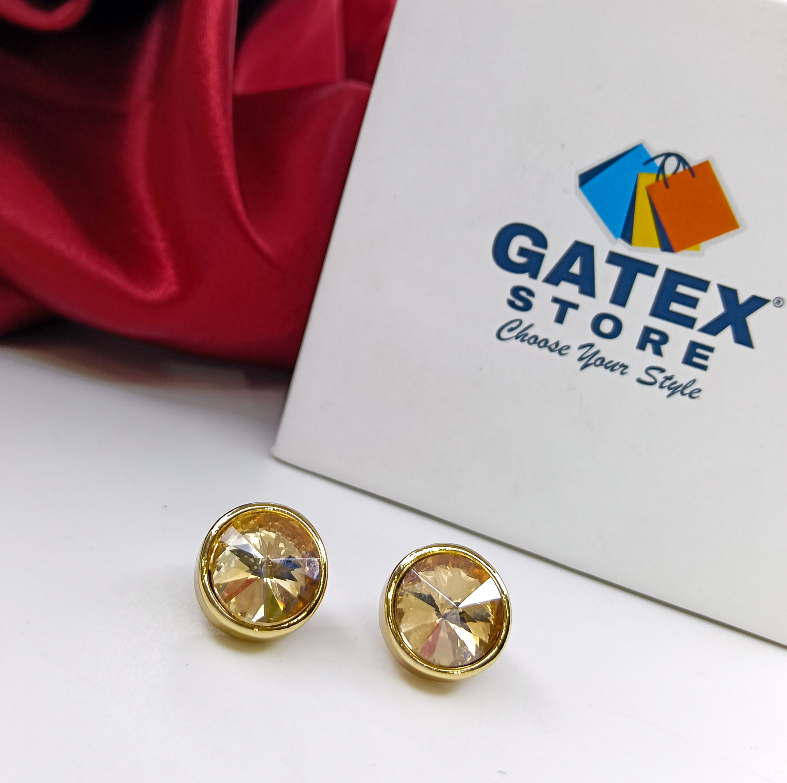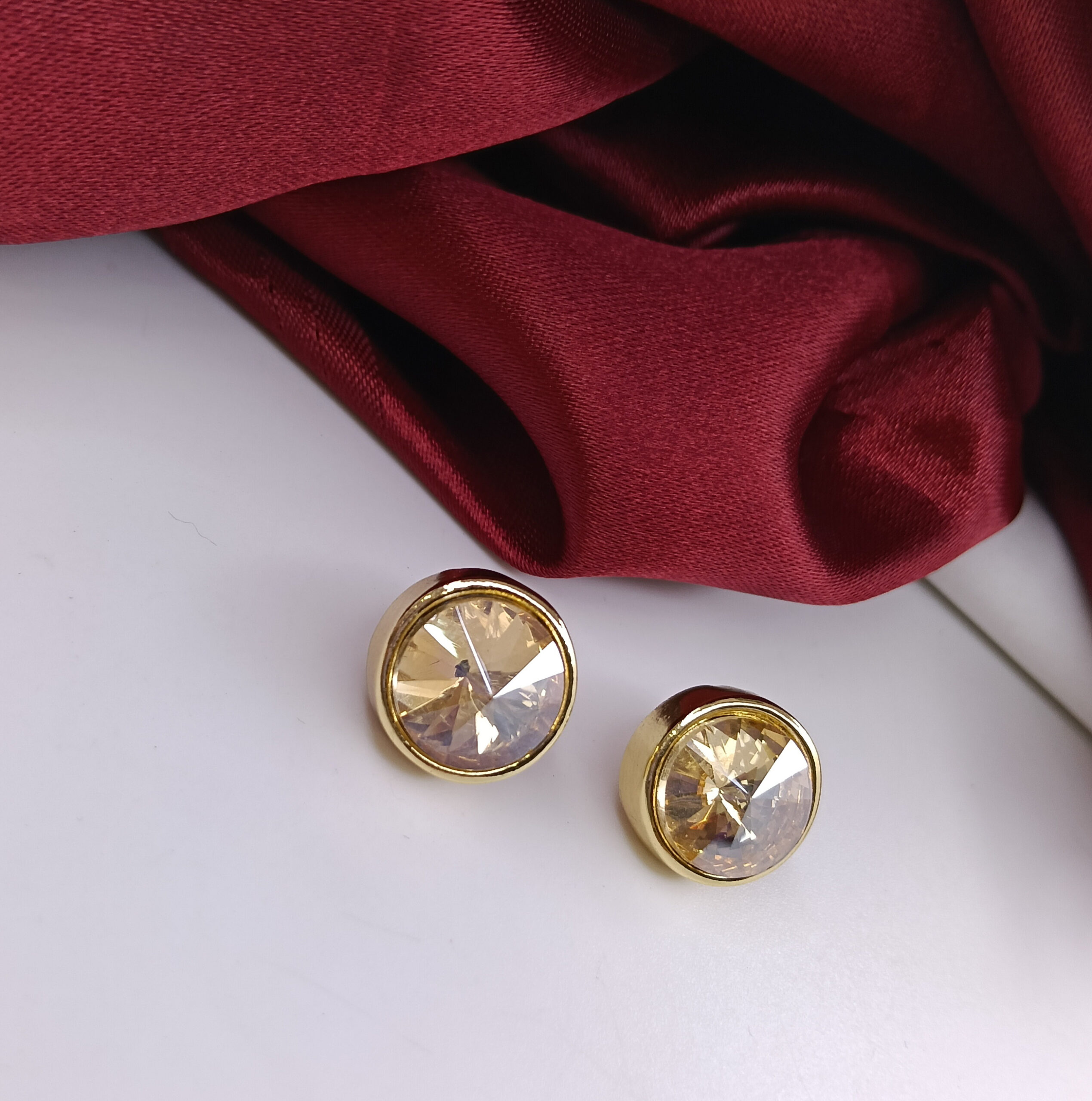 These timeless stud earrings feature sparkling round crystals set in polished gold-tone bezels. Their simple yet elegant design offers versatile appeal, perfect as a subtle accent for everyday style or as a touch of sophistication for special occasions. The warm gold setting enhances the brilliance of the crystals, creating a refined and radiant look.